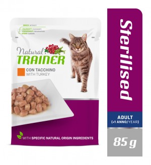 Natural Trainer Adult Sterilised with Turkey konservi sterilizētiem kaķiem ar tītaru 85g tītara gabaliņi mērcē1.25 €